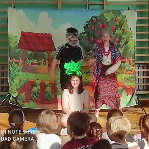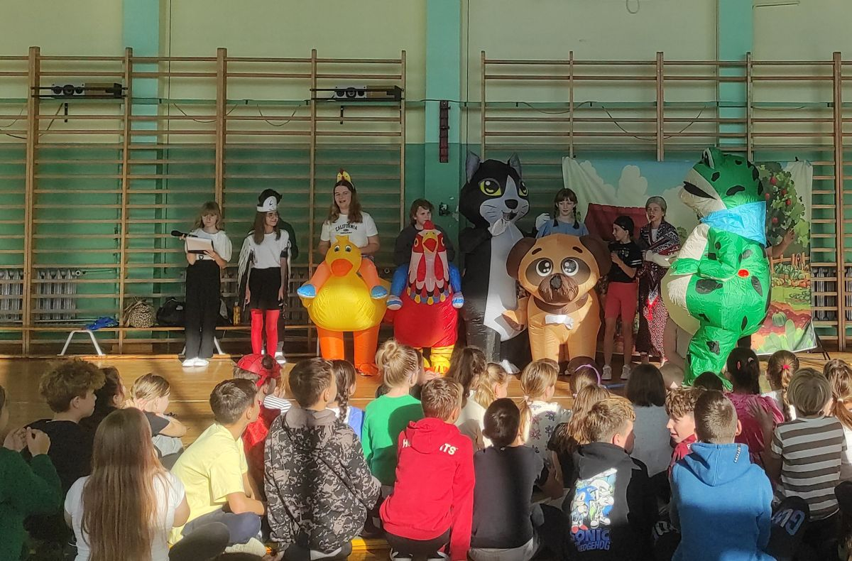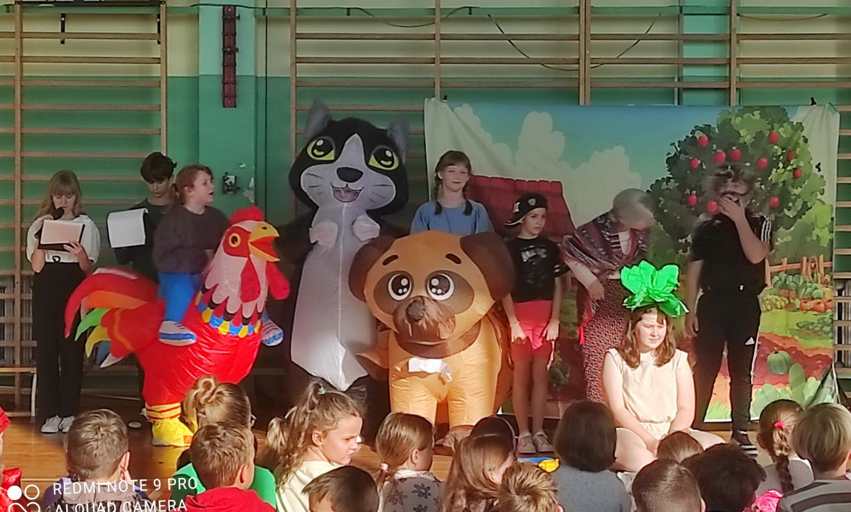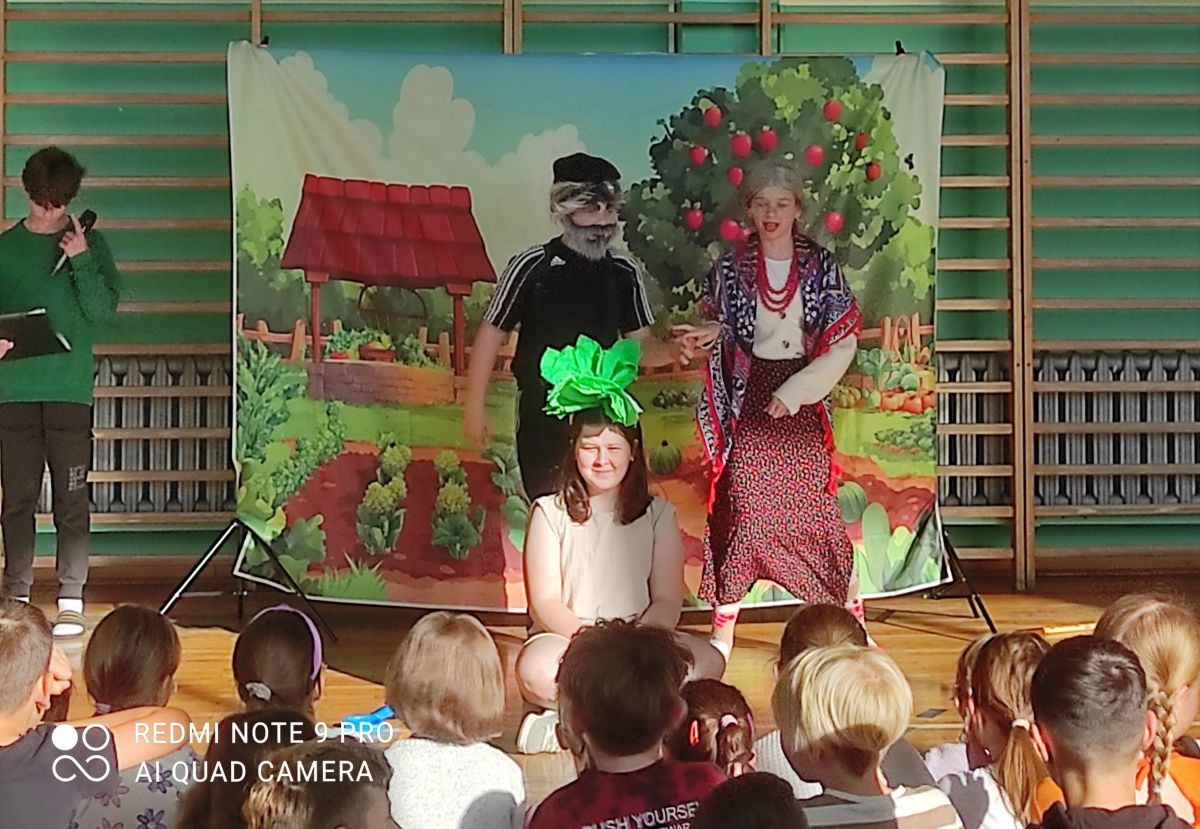 W ramach obchodów uczniowie klas I–VIII obejrzeli również wesołe przedstawienie „Rzepka”, zaprezentowane przez uczniów klasy 5 przy wsparciu uczniów z klasy 7a. Spektakl został nagrodzony gromkimi brawami – wszystkim bardzo się podobał!