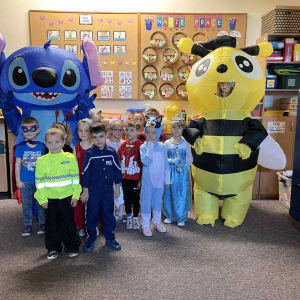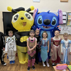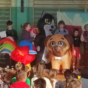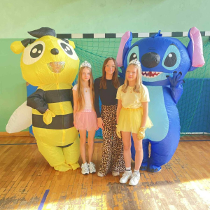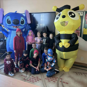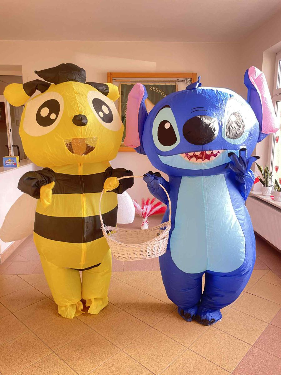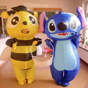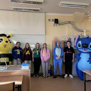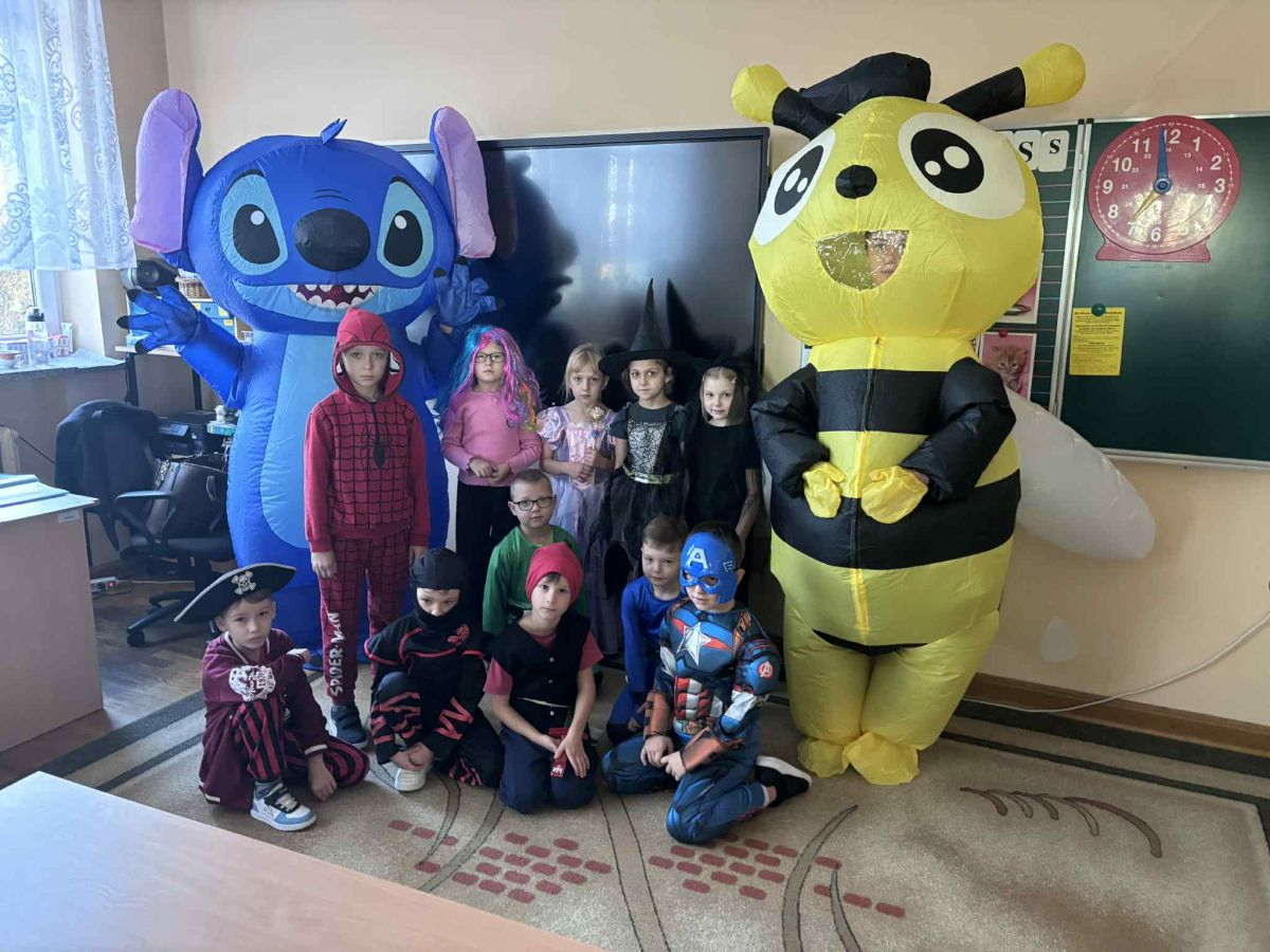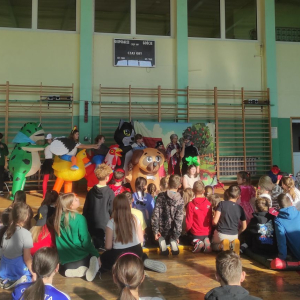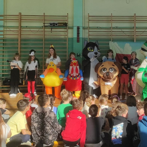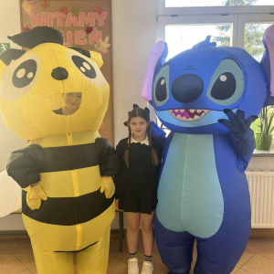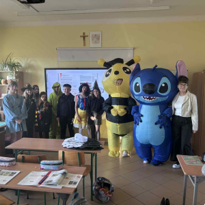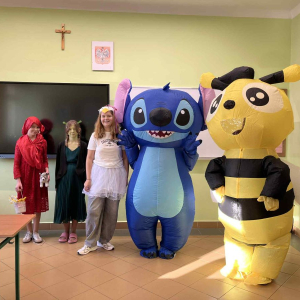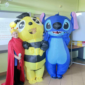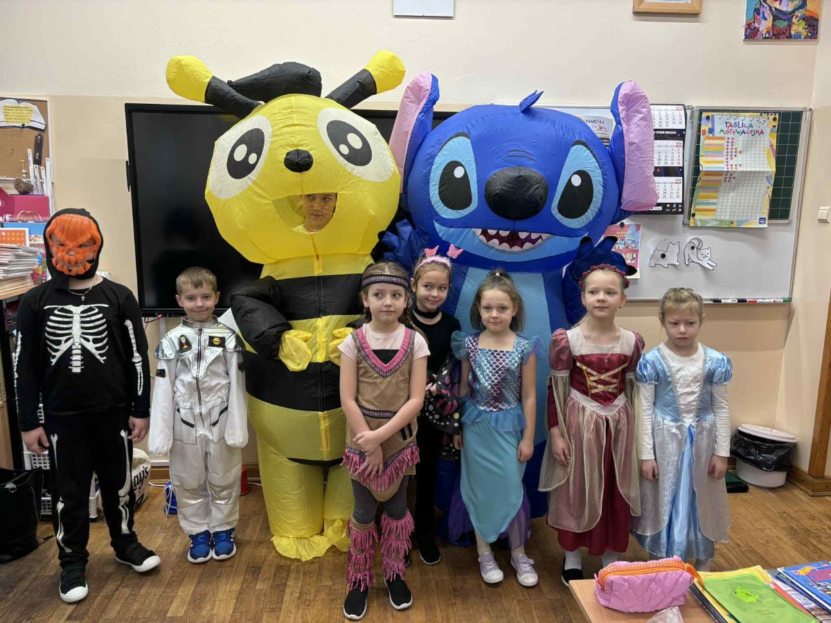 Niespodzianką były wizyty dwóch ogromnych, pompowanych postaci – Sticha i Pszczółki, które odwiedziły wszystkie klasy. Uczniowie chętnie robili sobie z nimi pamiątkowe zdjęcia, a ich obecność wywołała wiele śmiechu i radości.