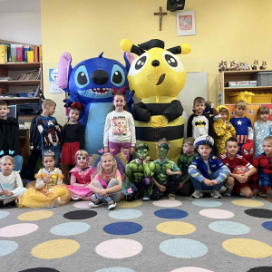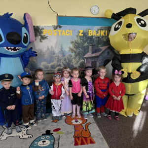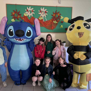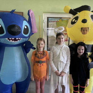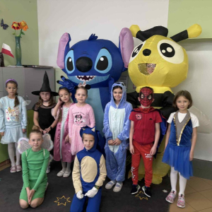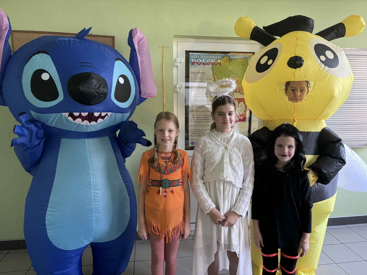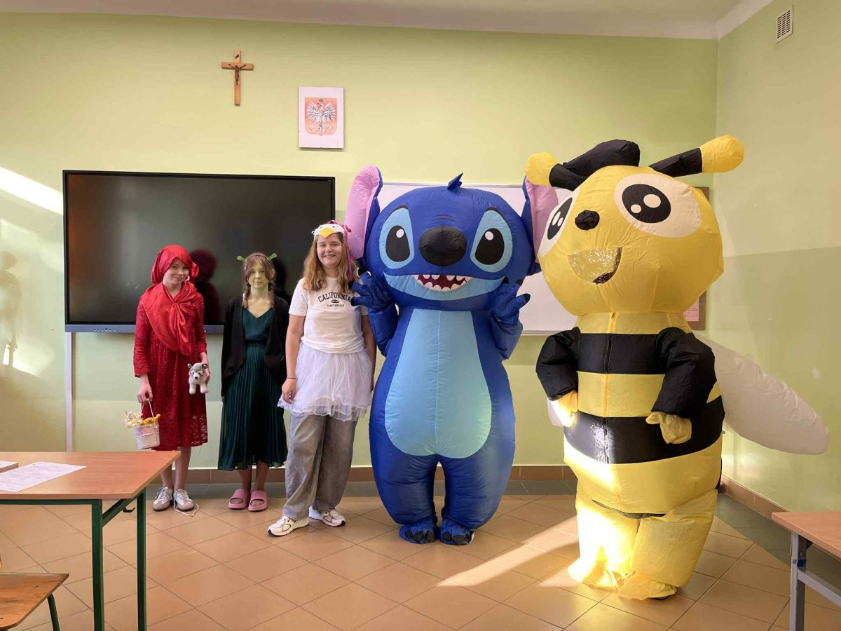 5 listopada w naszej szkole zrobiło się wyjątkowo kolorowo i bajkowo, ponieważ obchodziliśmy Dzień Postaci z Bajek. Tego dnia chętni uczniowie przyszli do szkoły przebrani za swoich ulubionych bohaterów – na korytarzach można było spotkać księżniczki, rycerzy, czarodziejów, superbohaterów i wiele innych postaci znanych z dziecięcych opowieści. Każdy, kto przygotował strój, otrzymał drobny upominek od Samorządu Uczniowskiego.
