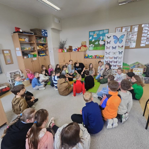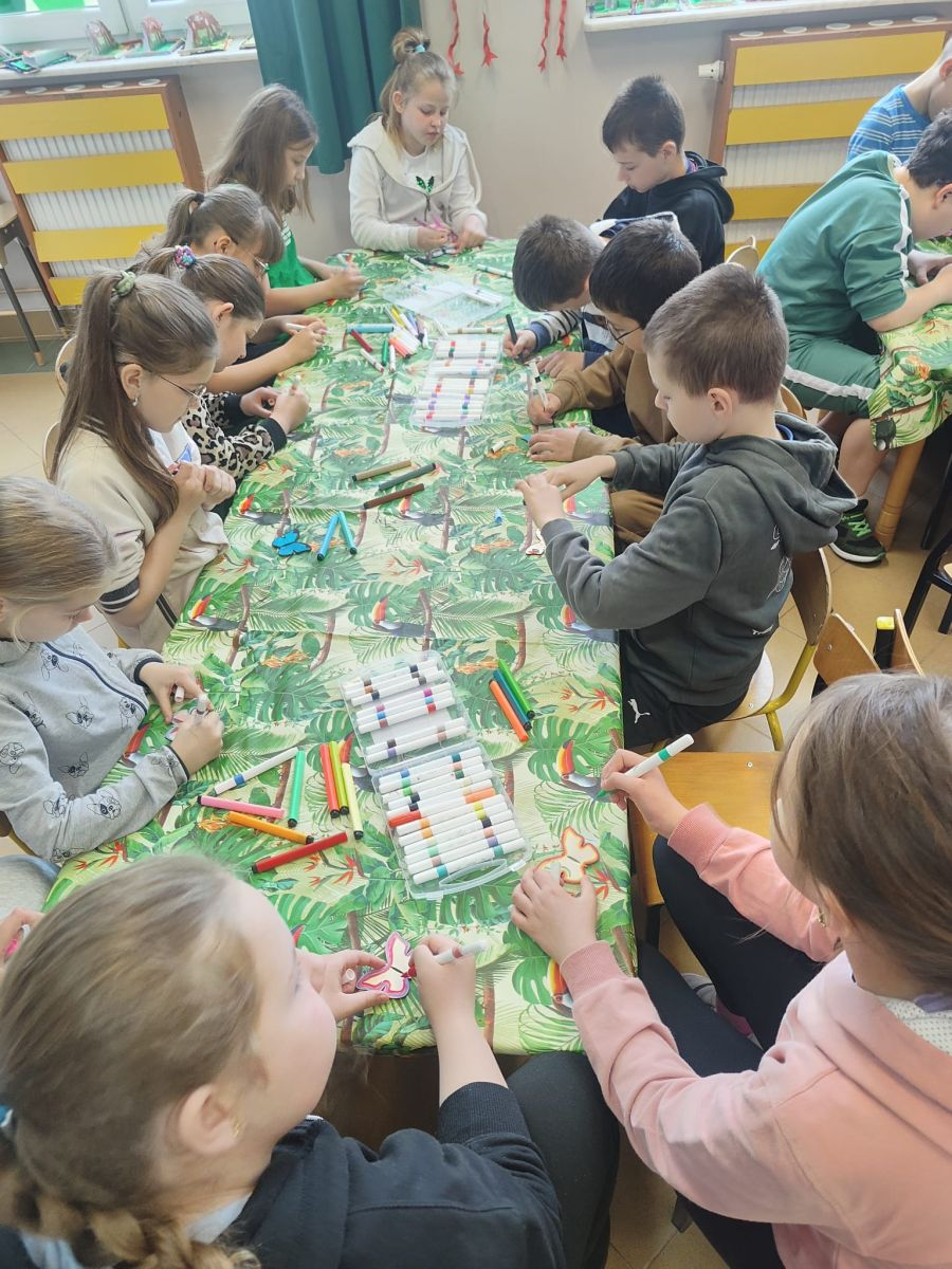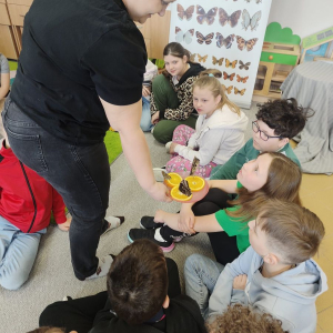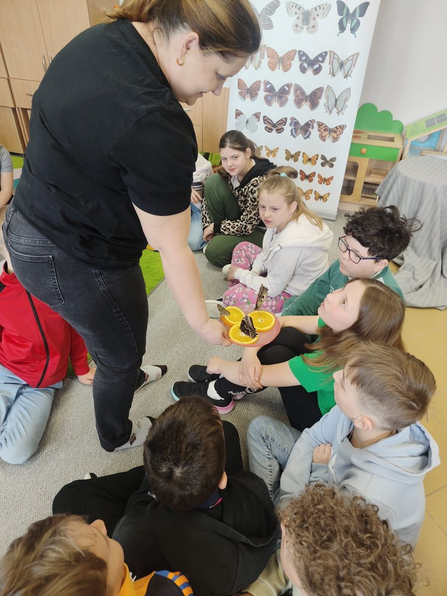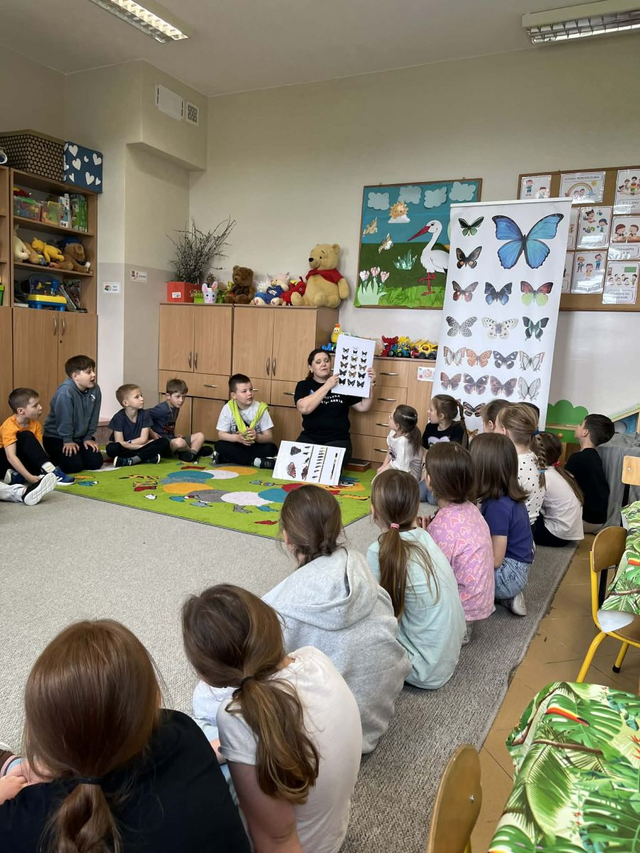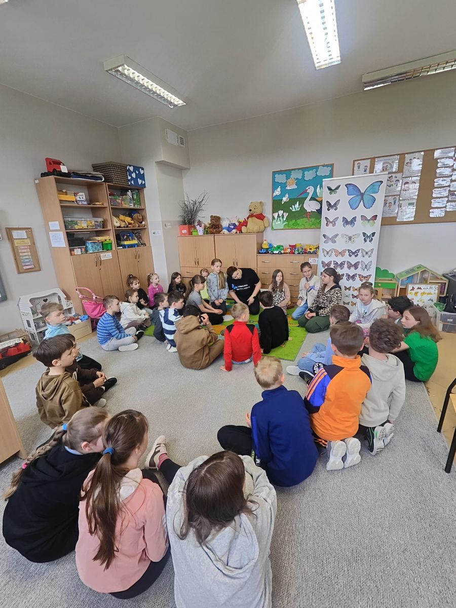 W poniedziałek, 20 kwietnia, uczniowie klas I–III oraz dzieci w wieku 4–6 lat uczestniczyli w wyjątkowych warsztatach edukacyjno-przyrodniczych zorganizowanych we współpracy z Lubelską Motylarnią.