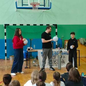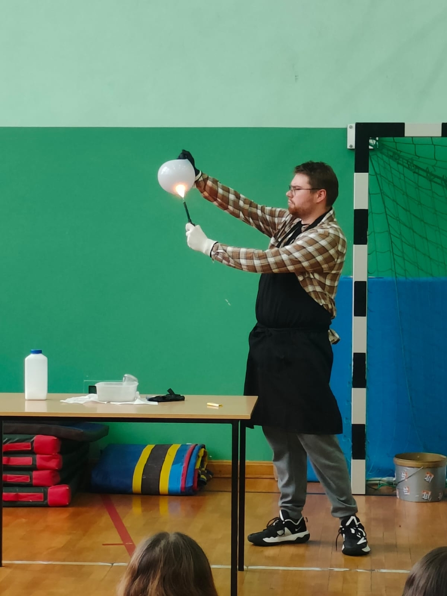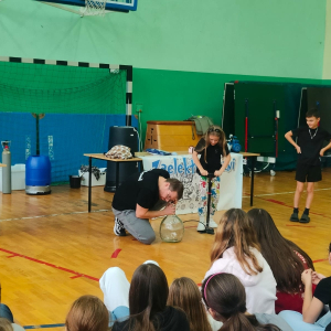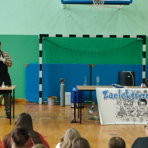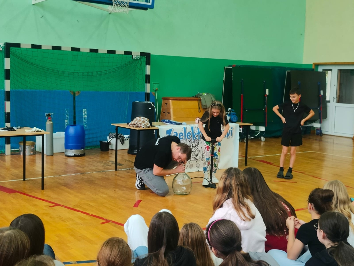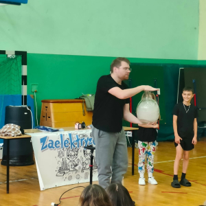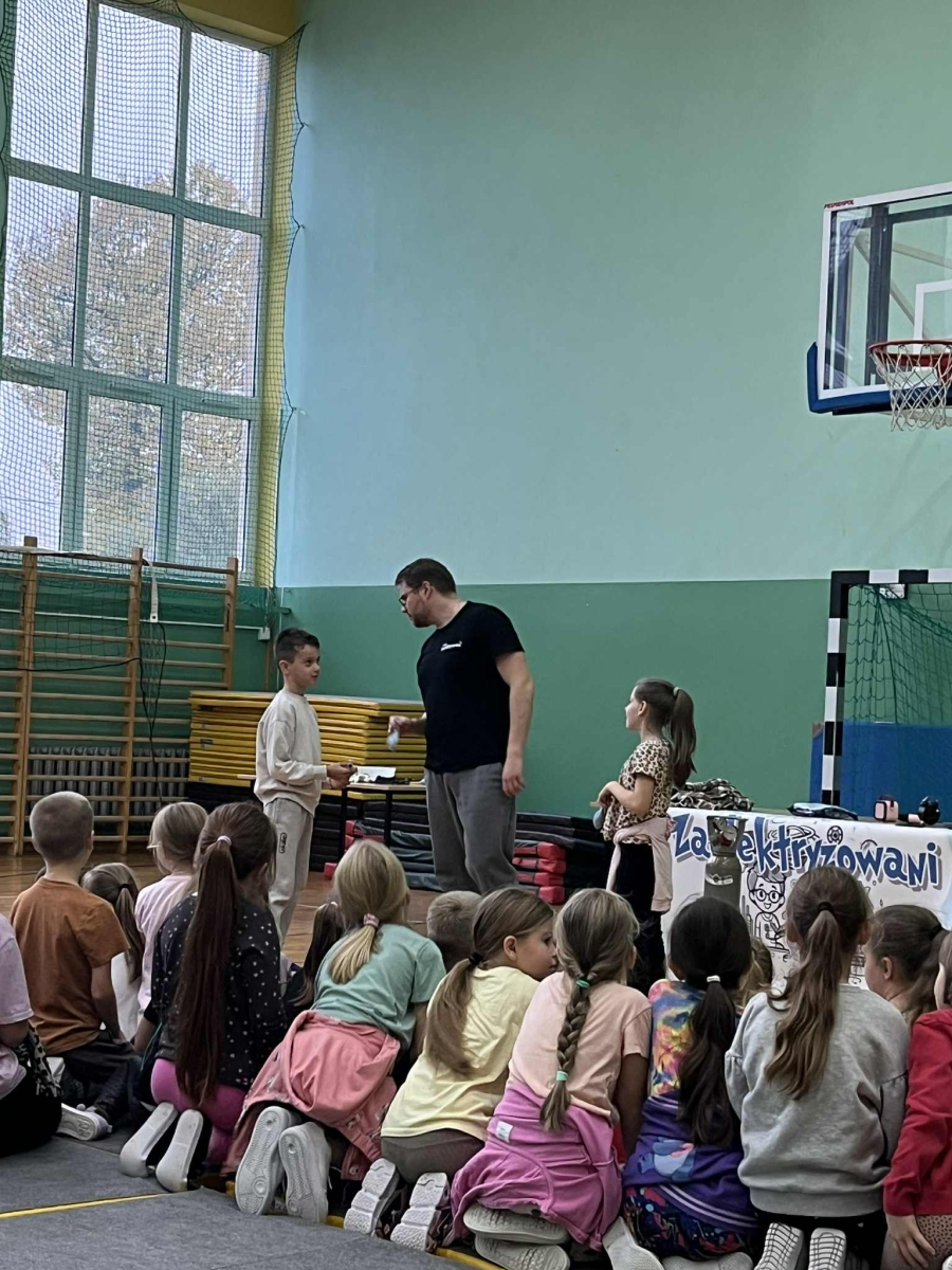 24 października naszą szkołę odwiedziła grupa Zelektryzowani z programem pt. „Fizyka wszędzie styka”. W pokazie wzięli udział uczniowie klas 1-3 oraz 4-8. Podczas spotkania uczniowie mieli okazję zobaczyć niecodzienne eksperymenty fizyczne, dowiedzieć się więcej o zagrożeniach i ochronie środowiska, a także uczestniczyć w zabawach z gazami - ciekłym azotem, helem i wybuchowym wodorem. Prezentowane były również ciekawe zjawiska fizyczne oraz kolekcja rekwizytów, w tym pompa próżniowa. Pokaz był pełen emocji. Dostarczył też solidną dawkę wiedzy w przystępnej i zabawnej formie. To była świetna lekcja która na długo zostanie w pamięci naszych uczniów.