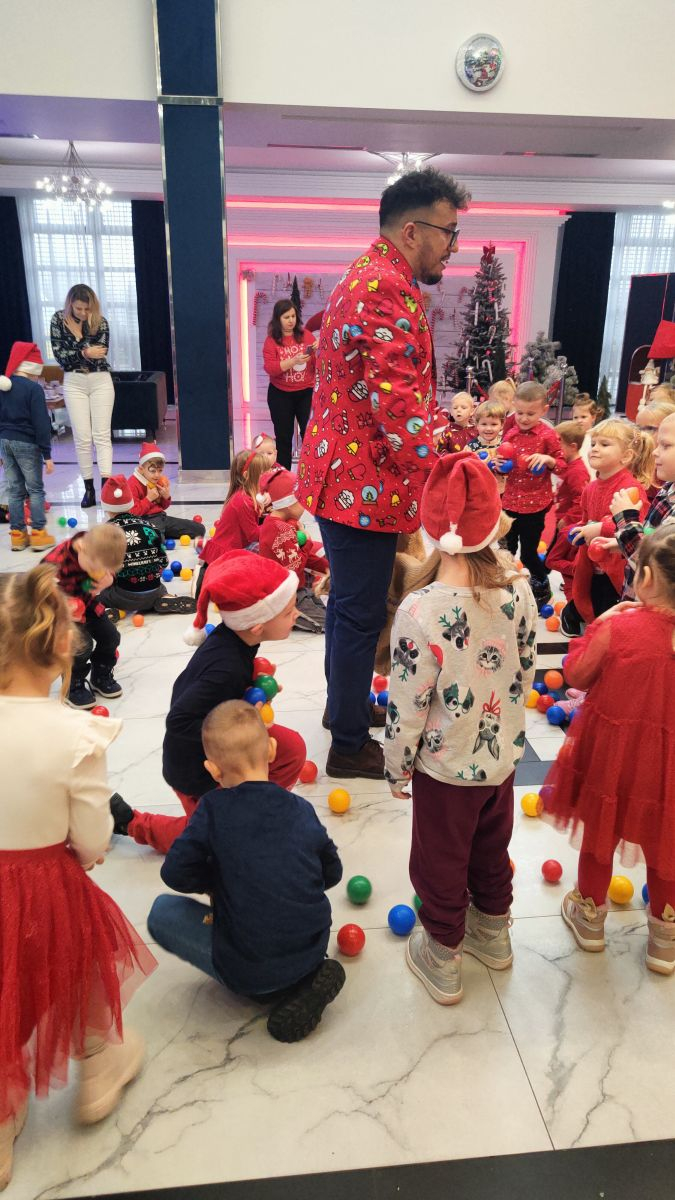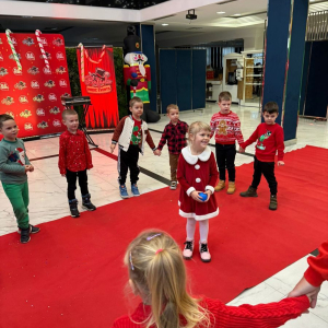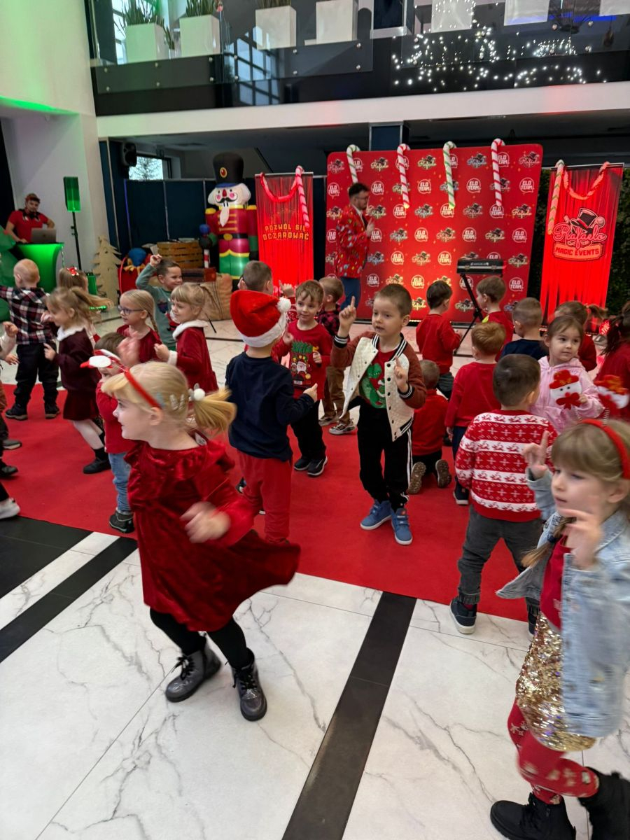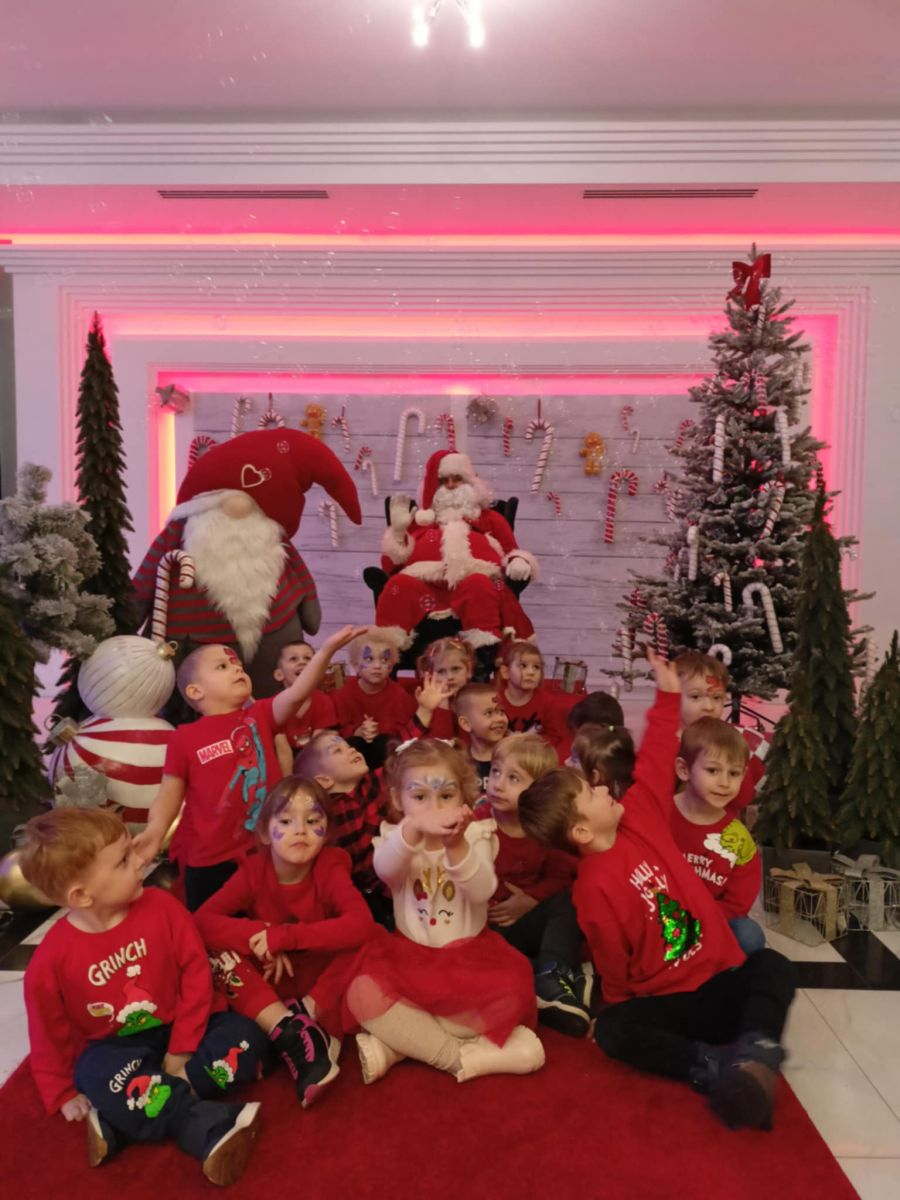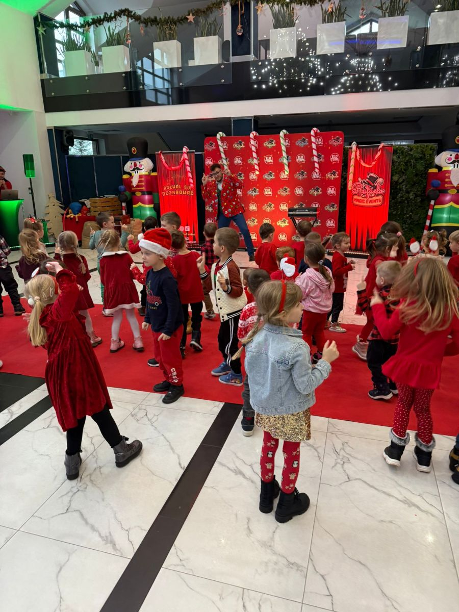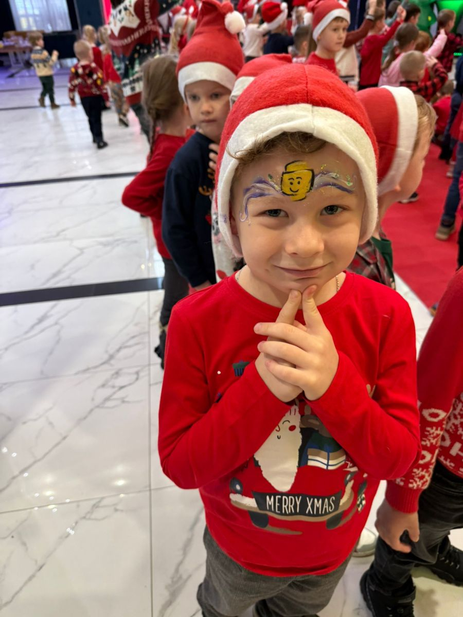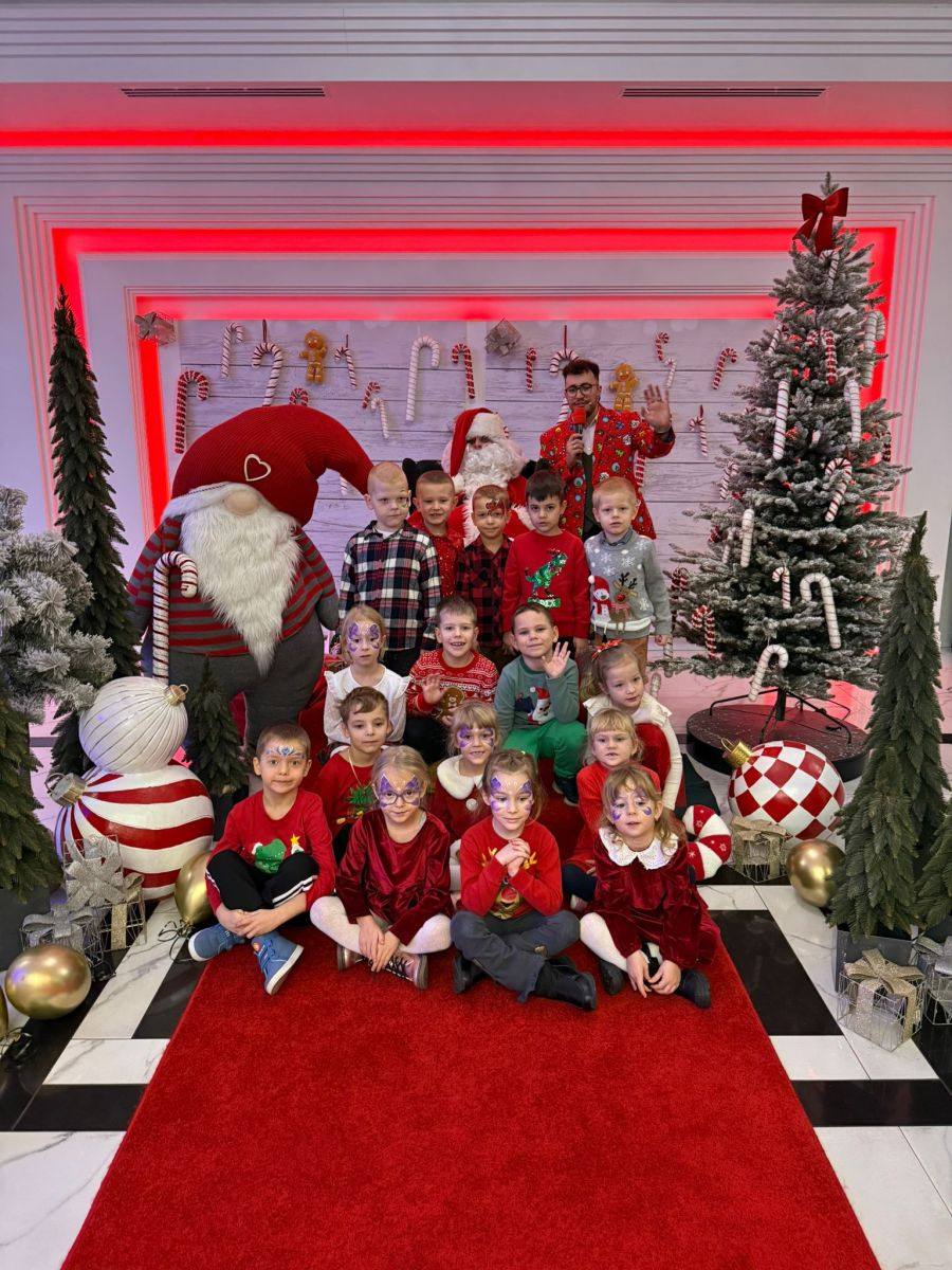 03.12.25, w sali bankietowej Chabrowy, odbyło się pełne atrakcji spotkanie mikołajkowe, w którym uczestniczyły wszystkie grupy z naszego przedszkola. Dzieci obejrzały pełnen magii pokaz iluzjonisty, a następnie brały udział w zabawach ruchowych, tańcach mikołajkowych oraz korzystały z atrakcji takich jak malowanie twarzy.