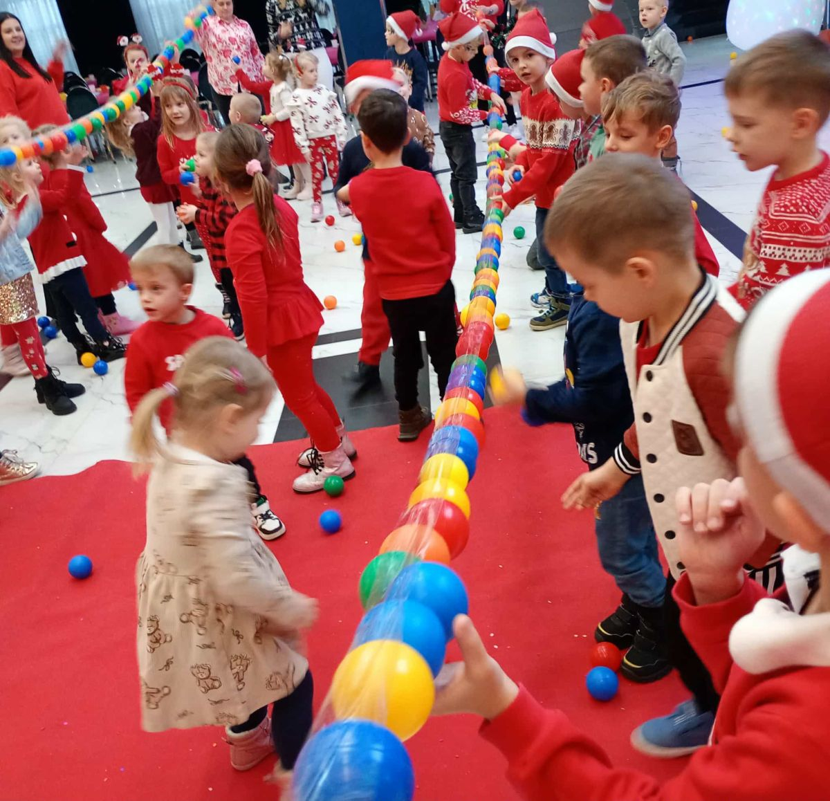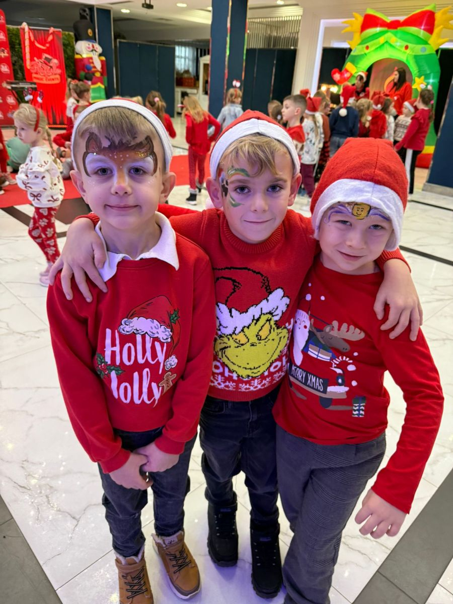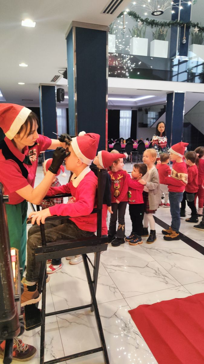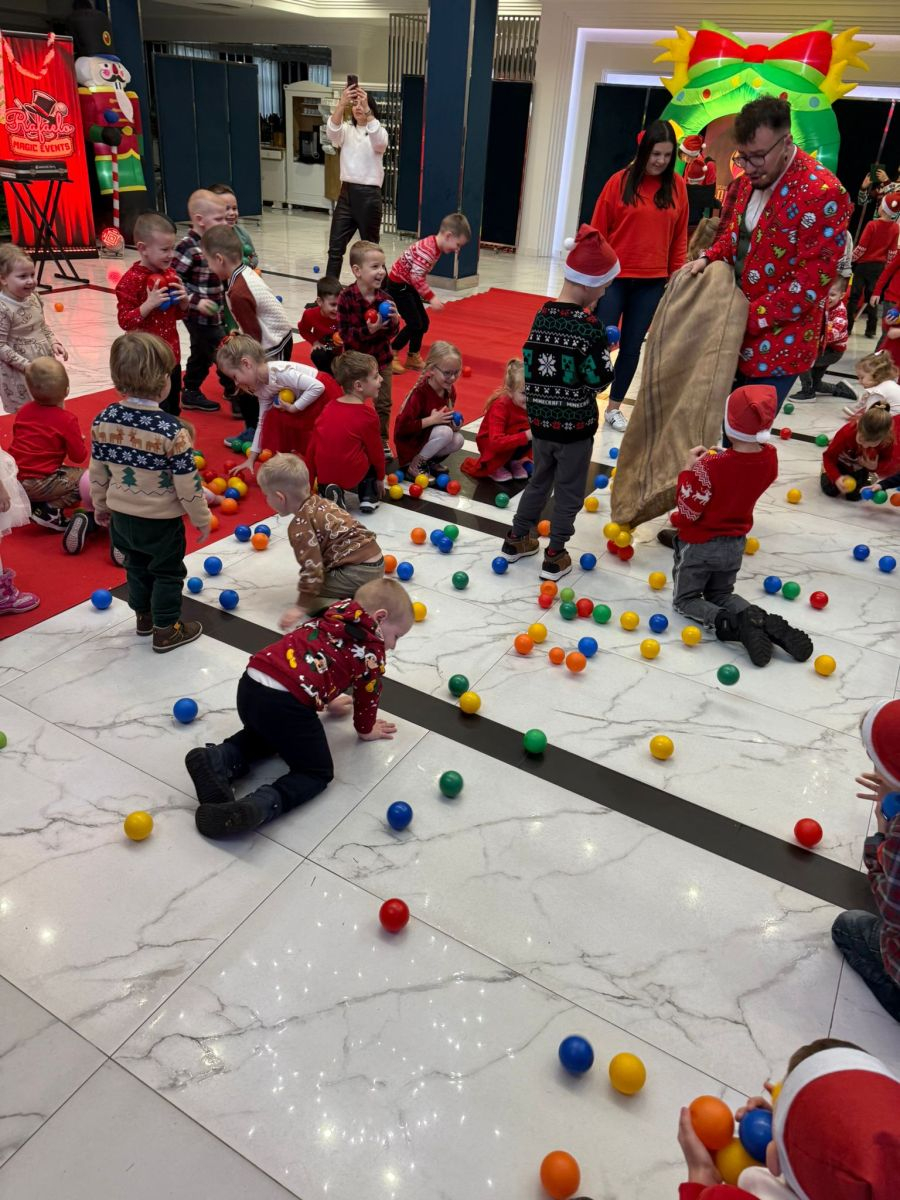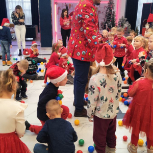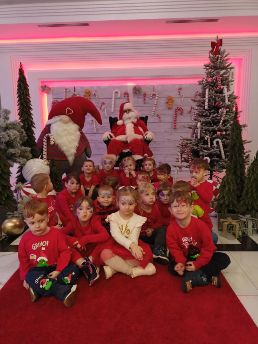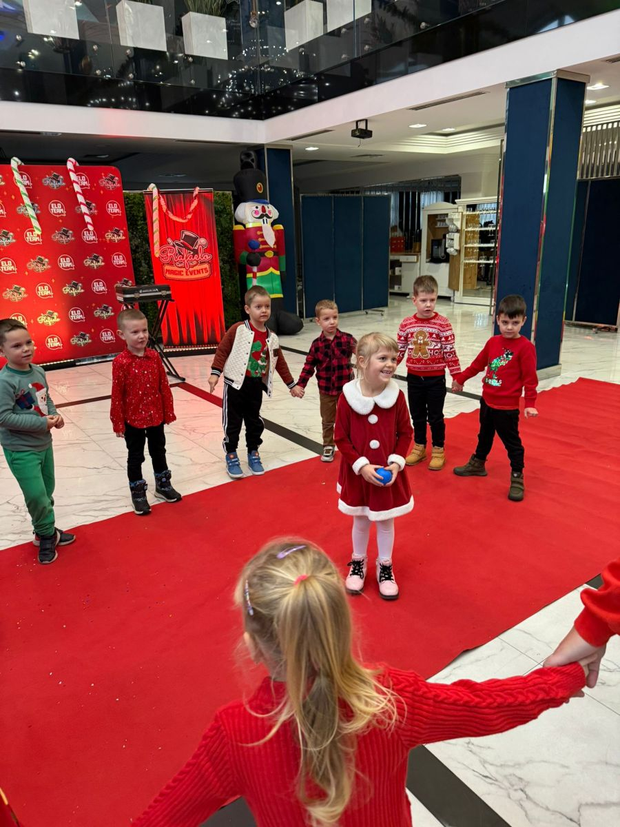 03.12.25, w sali bankietowej Chabrowy, odbyło się pełne atrakcji spotkanie mikołajkowe, w którym uczestniczyły wszystkie grupy z naszego przedszkola. Dzieci obejrzały pełnen magii pokaz iluzjonisty, a następnie brały udział w zabawach ruchowych, tańcach mikołajkowych oraz korzystały z atrakcji takich jak malowanie twarzy.