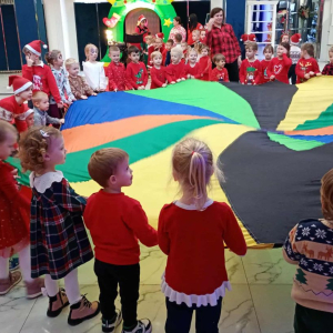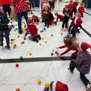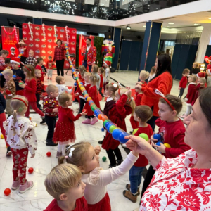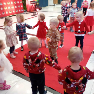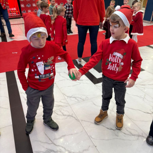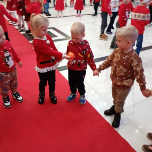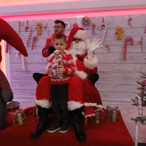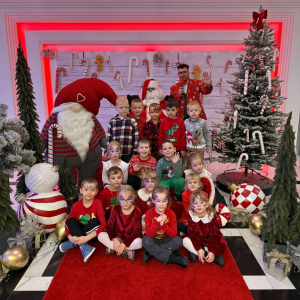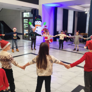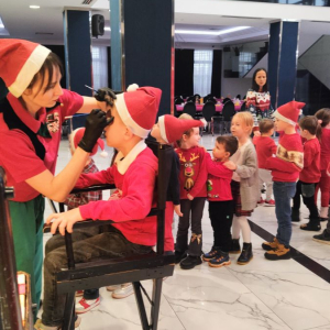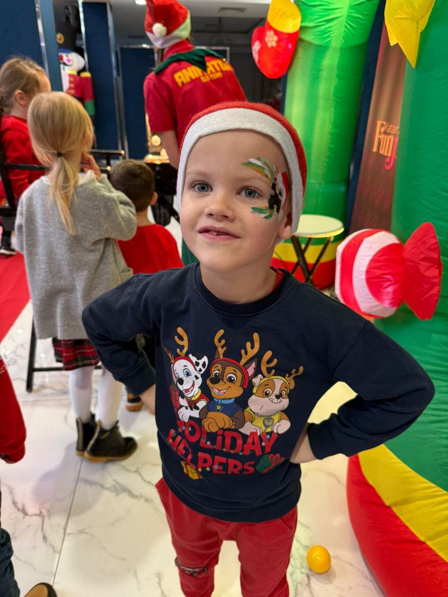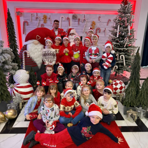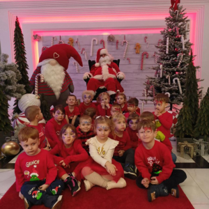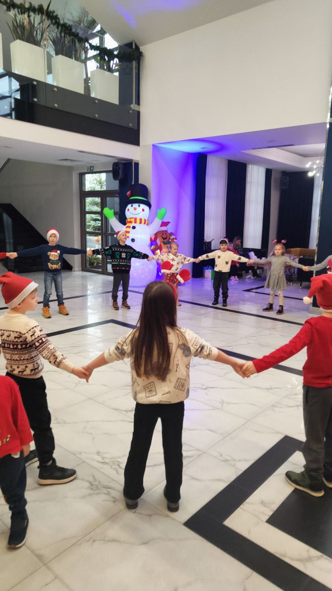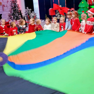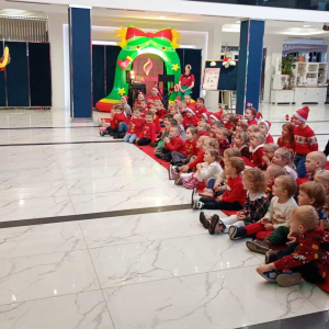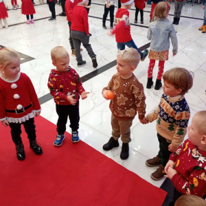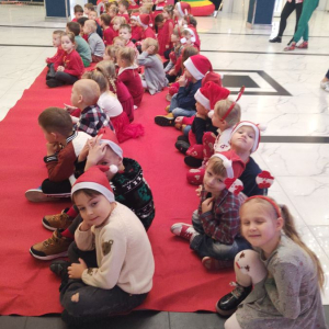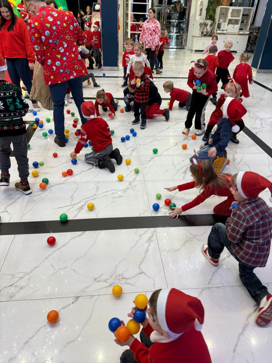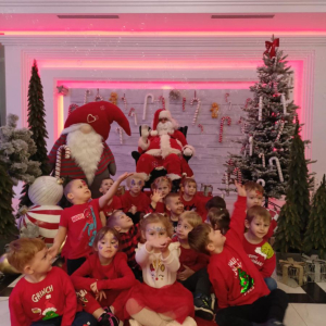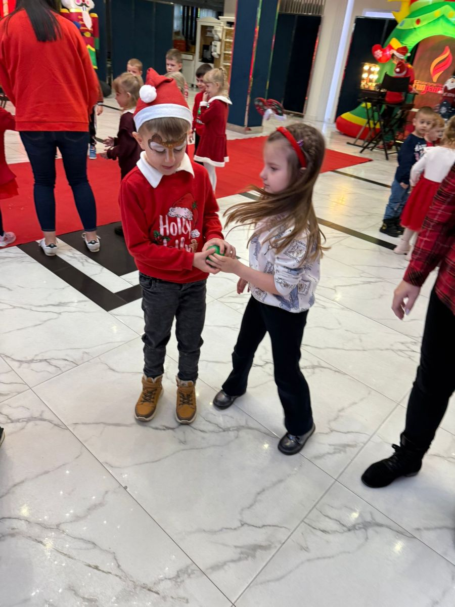 03.12.25, w sali bankietowej Chabrowy, odbyło się pełne atrakcji spotkanie mikołajkowe, w którym uczestniczyły wszystkie grupy z naszego przedszkola. Dzieci obejrzały pełnen magii pokaz iluzjonisty, a następnie brały udział w zabawach ruchowych, tańcach mikołajkowych oraz korzystały z atrakcji takich jak malowanie twarzy.