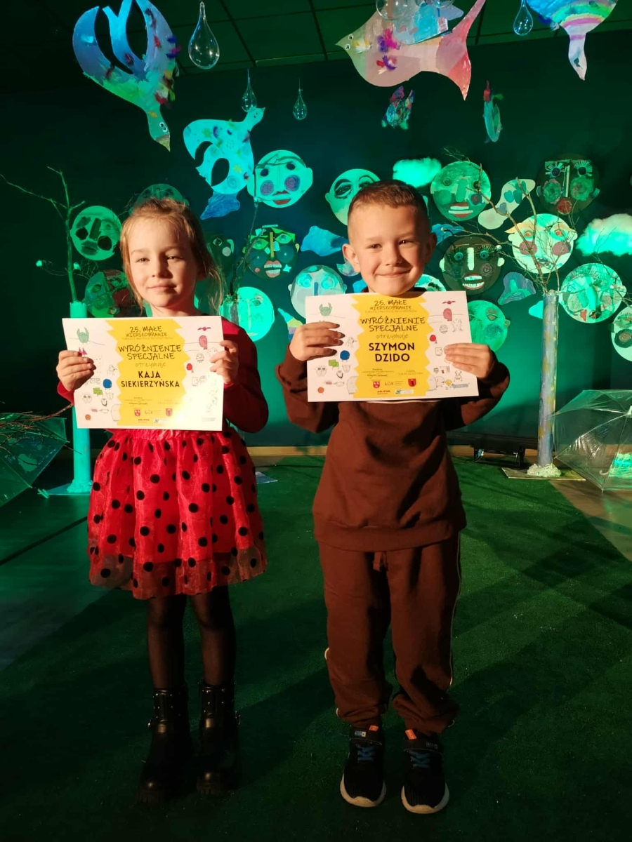 W dniach 23 i 24 października w Łukowskim Ośrodku Kultury odbyło się wydarzenie pod nazwą „Moje małe wierszobranie”. Nasze przedszkole reprezentowały dwie pary dzieci: Kaja Siekierzyńska i Szymon Dzido z grupy 5-latków, którzy zaprezentowali wiersz pt. „Żuk”, oraz Jakub Mazur i Franciszek Osiak z grupy 6-latków z wierszem pt. „Sum”.