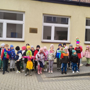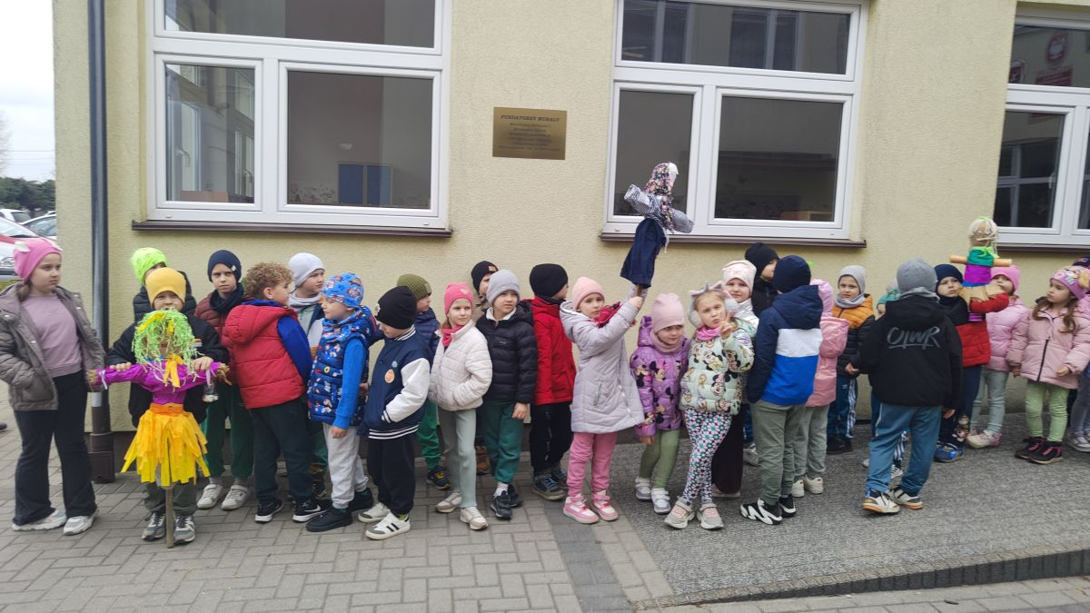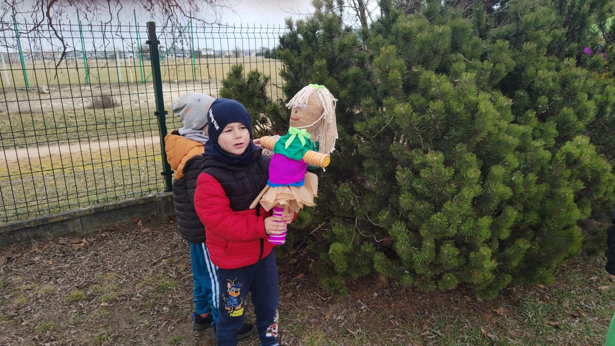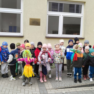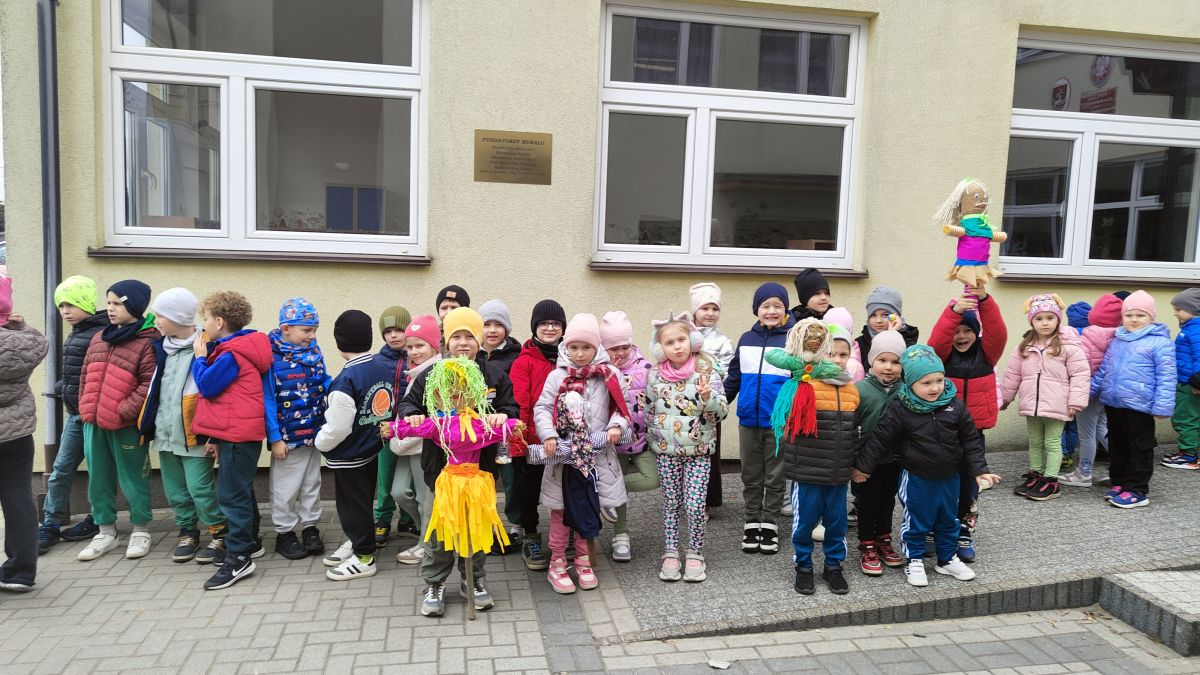 Na zakończenie przedszkolaki wraz z nauczycielami wyszły na zewnątrz w barwnym korowodzie z Marzanną, aby symbolicznie pożegnać zimę i powitać wiosnę.
