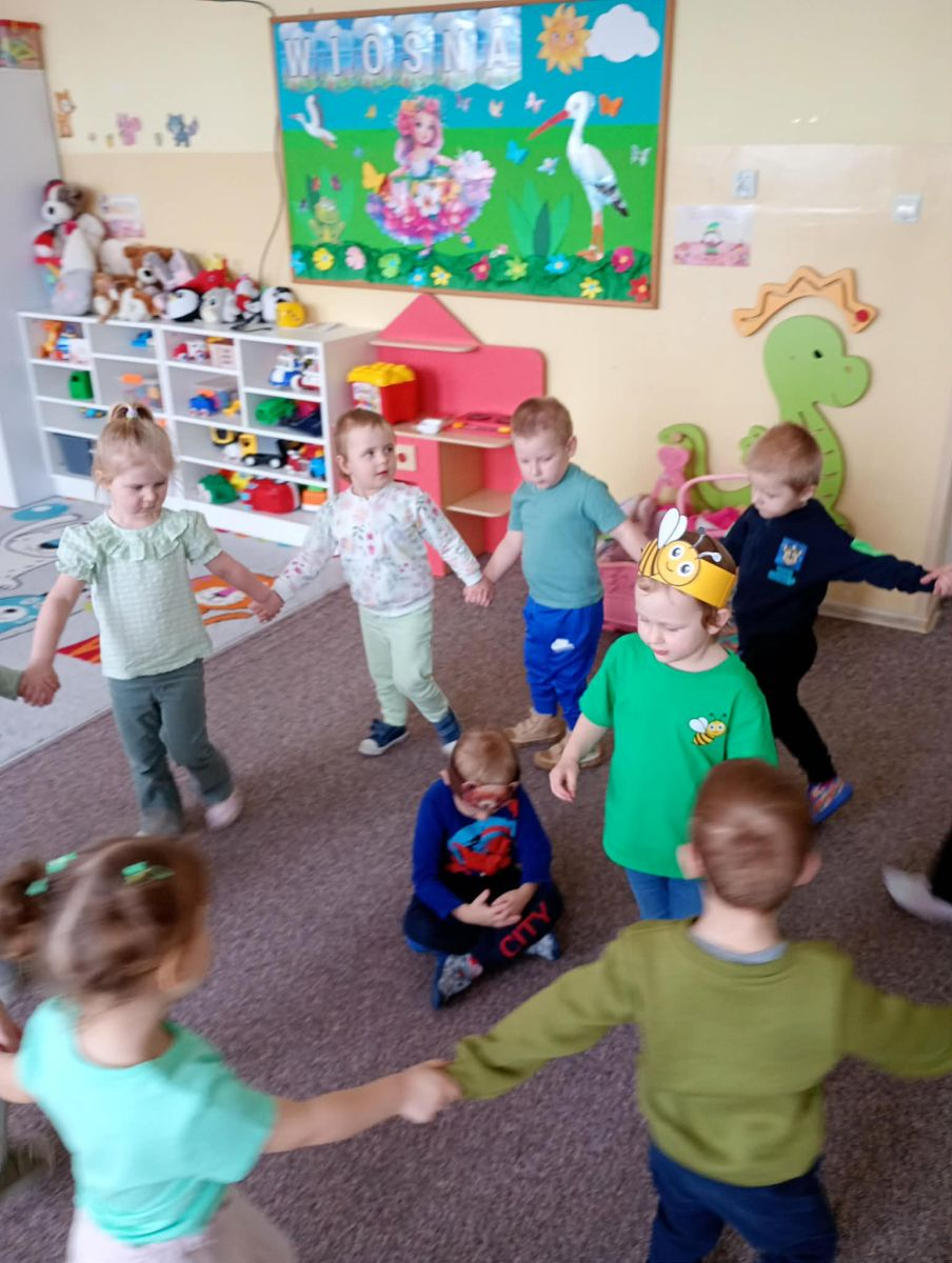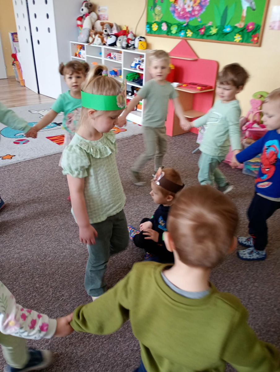 Pierwszy Dzień Wiosny w naszym przedszkolu upłynął w radosnej atmosferze. Dzieci brały udział w zajęciach tematycznych, śpiewały wiosenne piosenki, uczestniczyły w zabawach ruchowych oraz wykonywały prace plastyczne. W tym dniu dominował kolor zielony. Przedszkolaki przyszły ubrane w wiosenne barwy nawiązujące do budzącej się przyrody.