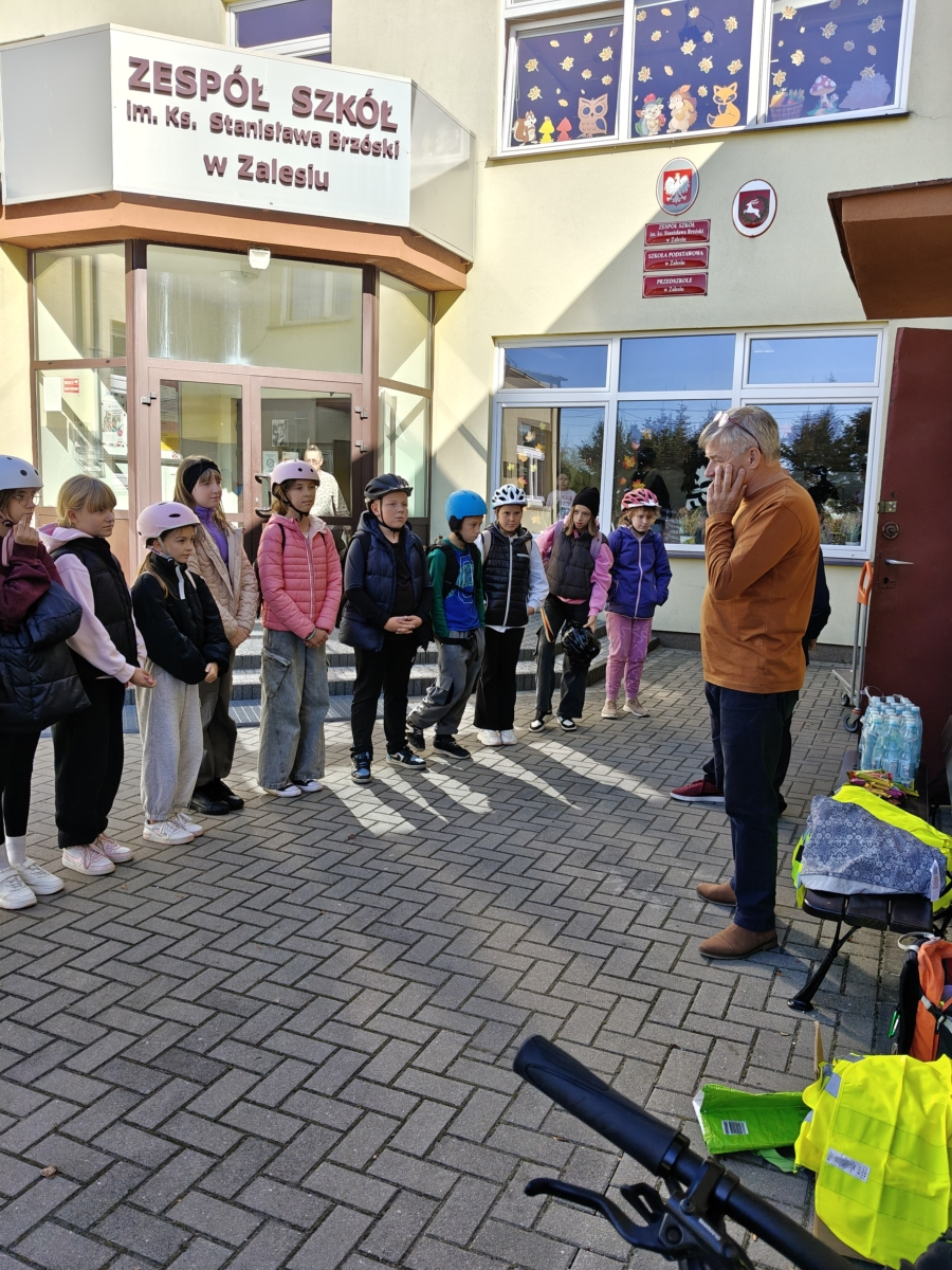 W dniu 25 września 2025 roku uczniowie klasy piątej Zespołu Szkół w Zalesiu wraz z opiekunami i przedstawicielami rodziców wyruszyli na rajd rowerowy z geocachingiem. Rajd zorganizował UKS Zalesie zgodnie z umową na realizację zadania pożytku publicznego z Gminą Łuków.