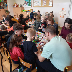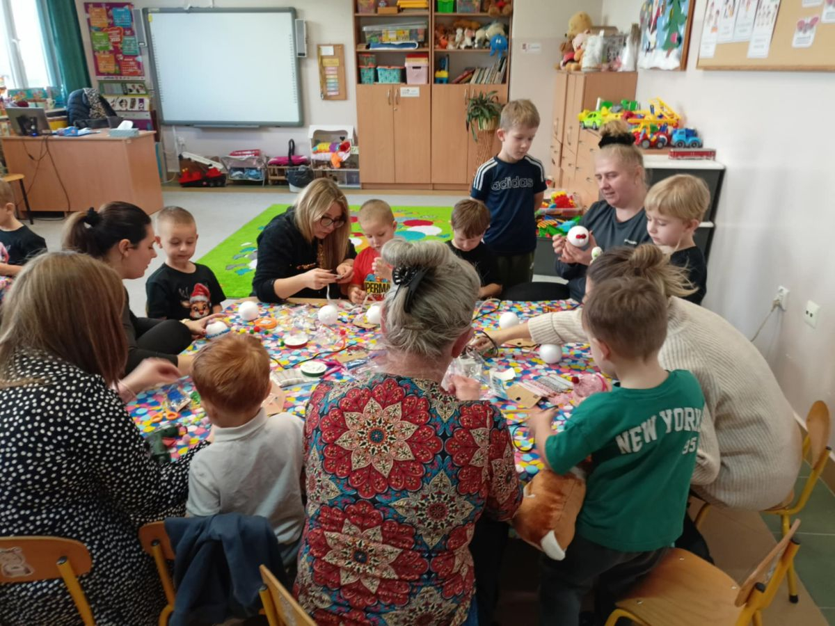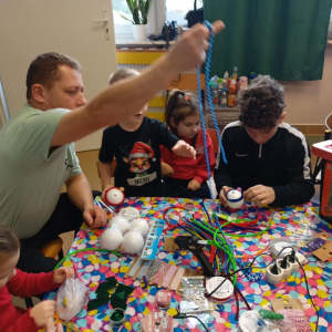 11 grudnia 2025 roku w grupie „Biedronki” odbyły się świąteczne warsztaty. Dzieci i rodzice wykonywali bombki na choinkę. Pomysłowość, czas wspólnie spędzony z bliskimi był wyjątkowy. Przedszkolaki razem z dorosłymi bawili się wspaniale. Z zadowoleniem każde dziecko zabrało swoją pracę do domu.