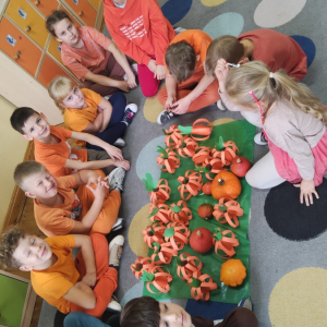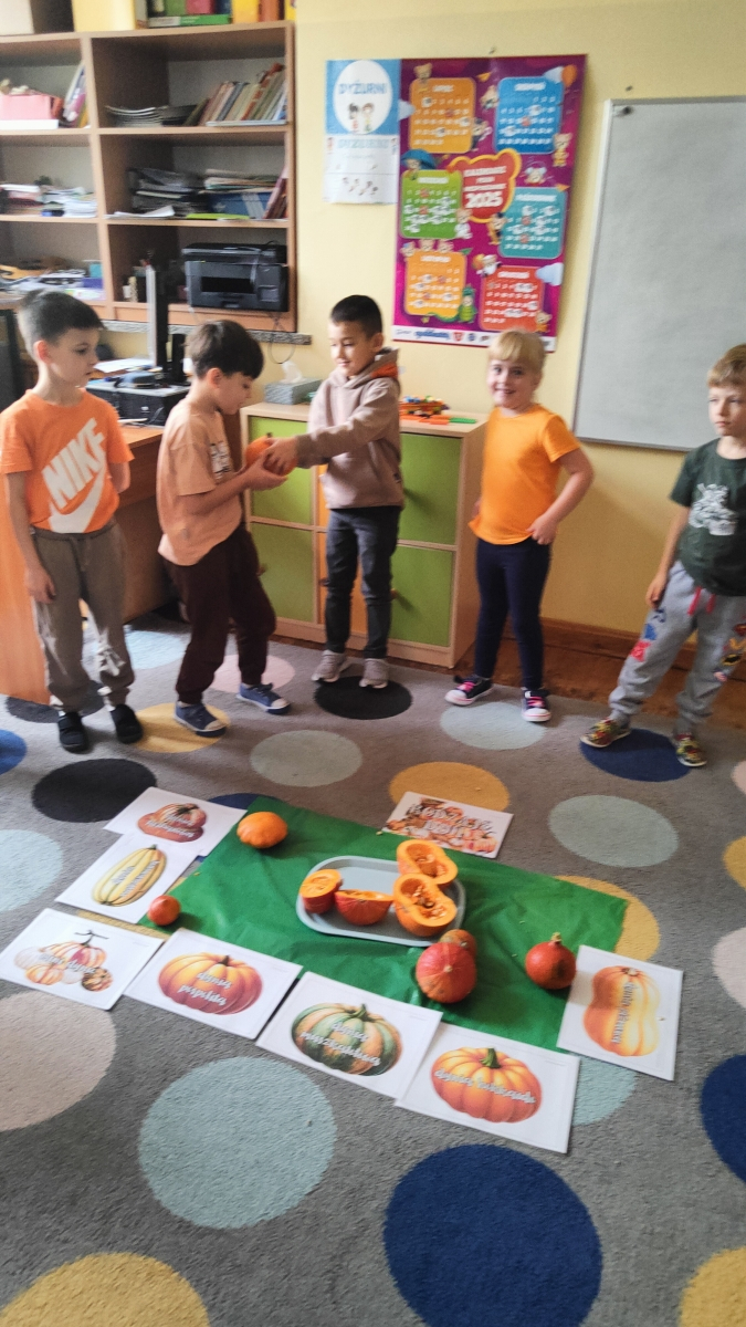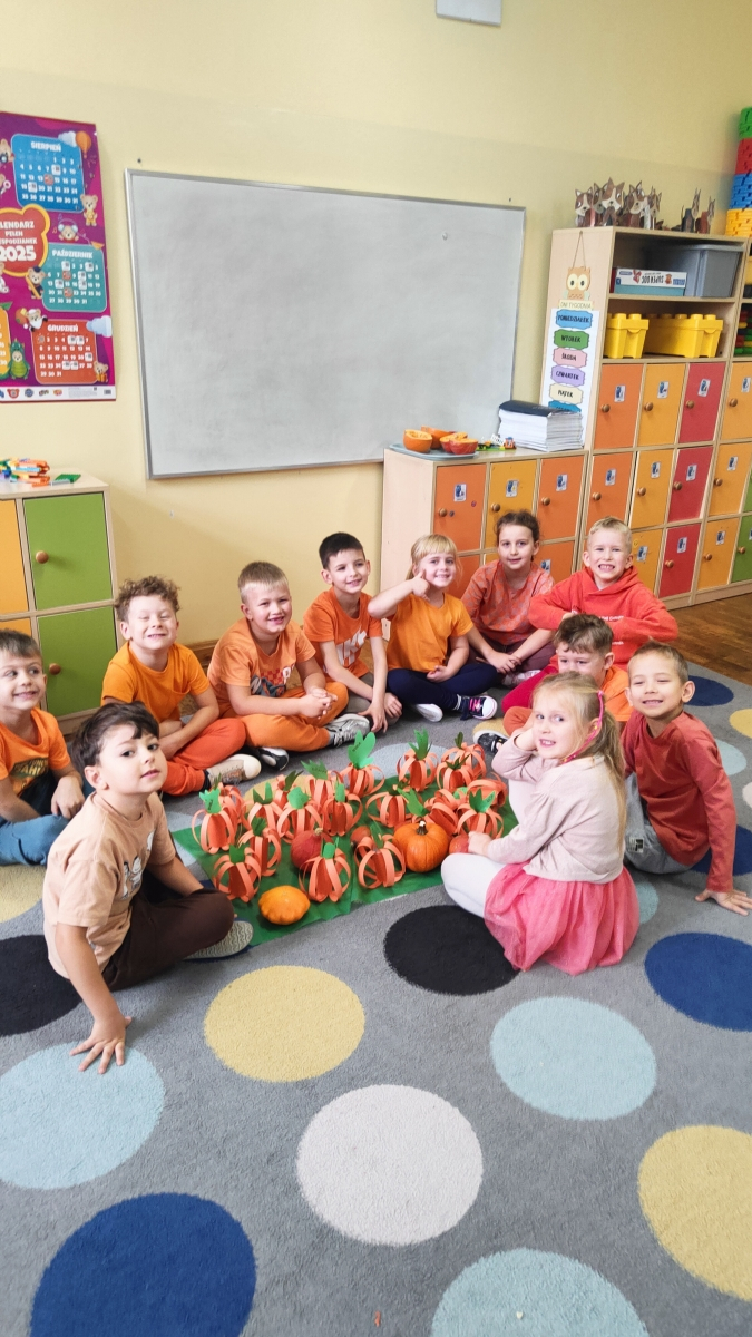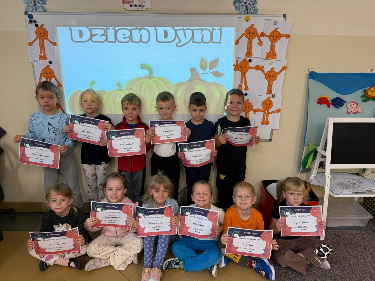 31 października w naszym przedszkolu obchodziliśmy Święto Dyni. W tym dniu symbolicznie dominował kolor pomarańczowy. Dzieci miały okazję uczestniczyć w różnorodnych aktywnościach związanych z tą popularną rośliną. Były tańce i zabawy a także dyniowe zawody. Dzieci dowiedziały się o różnych odmianach dyni oraz zobaczyły, co się kryje w ich środku. Dynia była także inspiracją do prac plastyczno-technicznych.