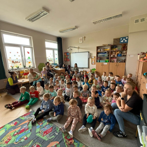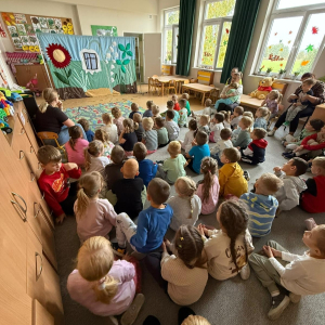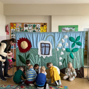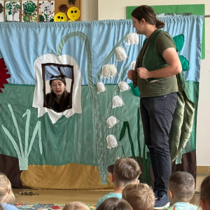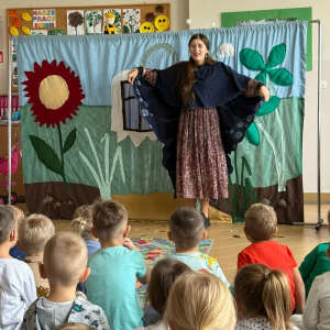 Dziś w naszym przedszkolu dzieci miały okazję obejrzeć przedstawienie pt. „Kto jest najpiękniejszy” w wykonaniu aktorów ze studia artystycznego „Arkadia”. Spektakl opowiadał o motylu, który zachwycony swoim wyglądem nie chciał pomagać innym owadom w przygotowaniach do zimy. Podczas gdy pająk budował sobie ciepły dom, a pszczółka pracowicie gromadziła zapasy, motyl wolał odpoczywać i podziwiać swoje kolorowe skrzydła. Gdy przyszła zima, okazało się, że piękno zewnętrzne nie wystarczy, by przetrwać trudne chwile — dużo ważniejsze są pracowitość, troska o innych i gotowość do pomocy.