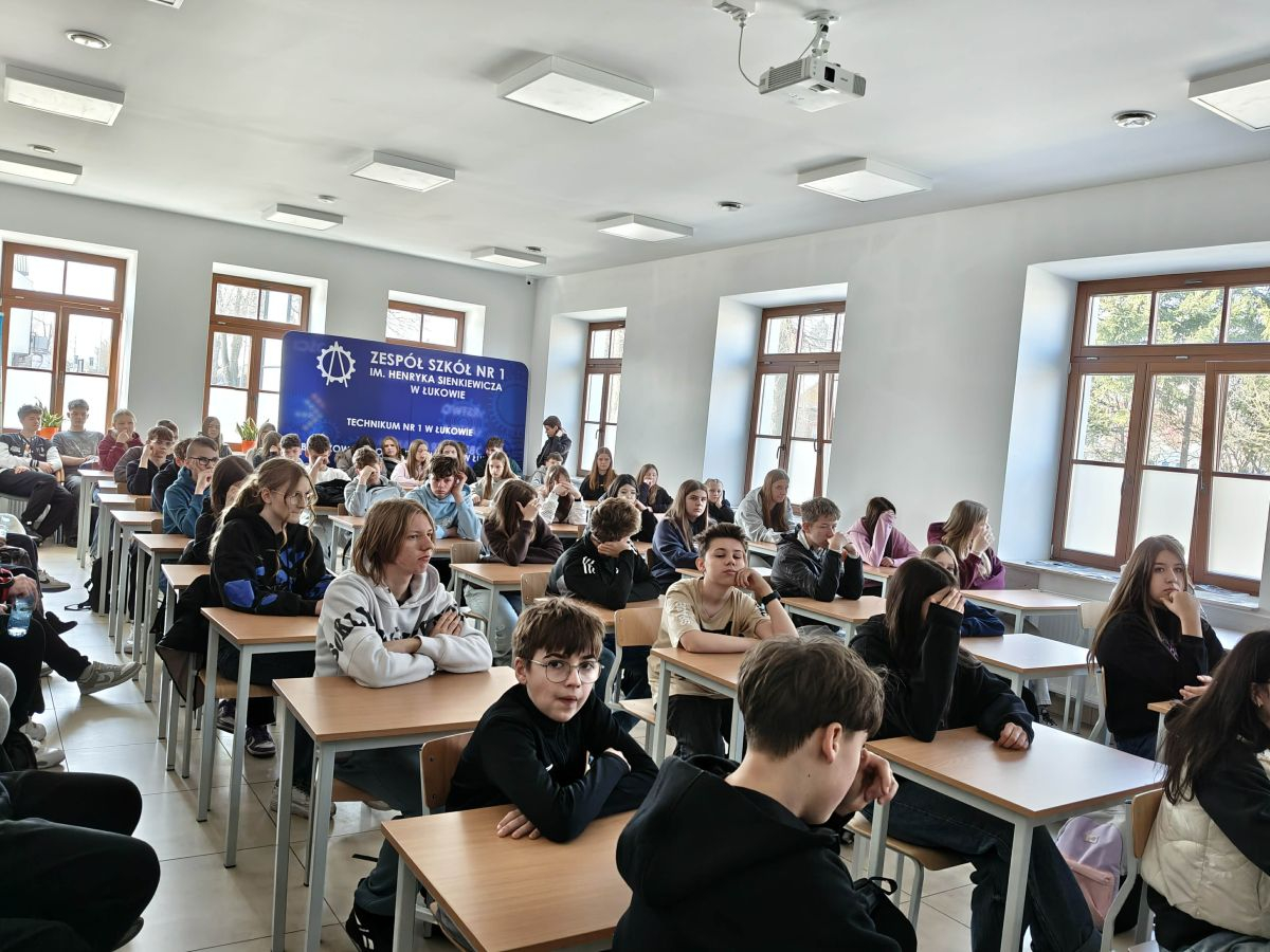 W dniu 19 marca 2026r. uczniowie klas siódmych i ósmej wraz z wychowawcami wzięli udział w warsztatach organizowanych przez BCU w Łukowie przy Zespole Szkół nr 1 im. Henryka Sienkiewicza. Warsztaty miały charakter doradztwa zawodowego i promowały naukę w kierunkach kształcenia oferowanych przez szkołę.