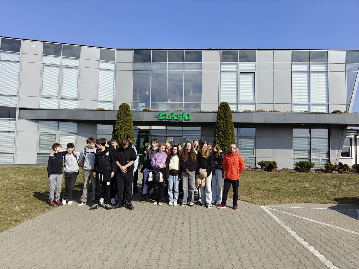 W ramach warsztatów uczniowie uczestniczyli w wizycie studyjnej w firmie Łuksja Sp. z o. o. gdzie mieli szansę poznać funkcjonowanie nowoczesnego przedsiębiorstwa oraz zobaczyć różnorodne środowiska pracy – od zawodów technicznych i produkcyjnych, przez specjalistów ds. jakości, technologów odzieży i projektantów po logistyków, informatyków, pracowników administracji i kadr.