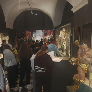 Następnie uczestnicy wycieczki obejrzeli spektakl pt. „Koronacja”, który pozwolił im przenieść się w świat teatru i sztuki.