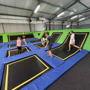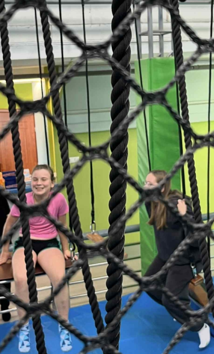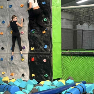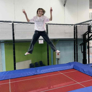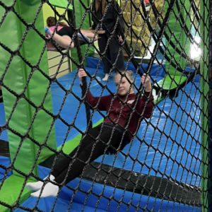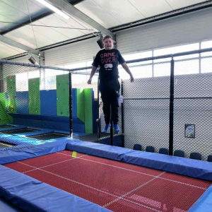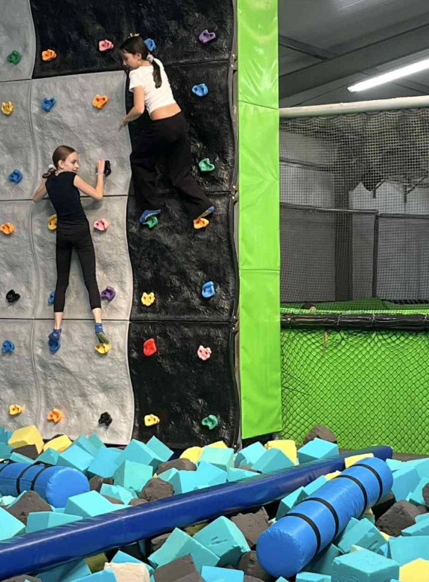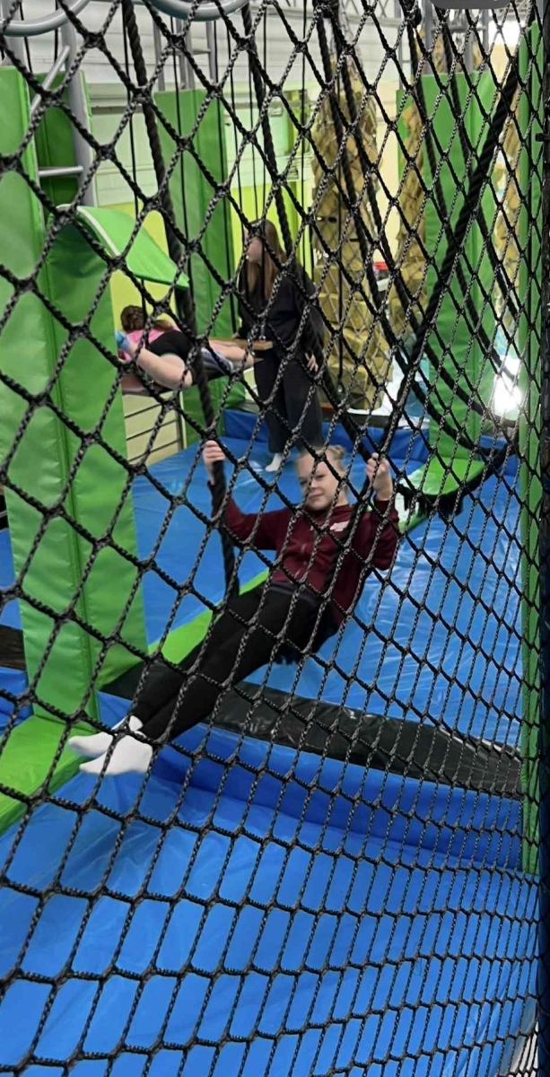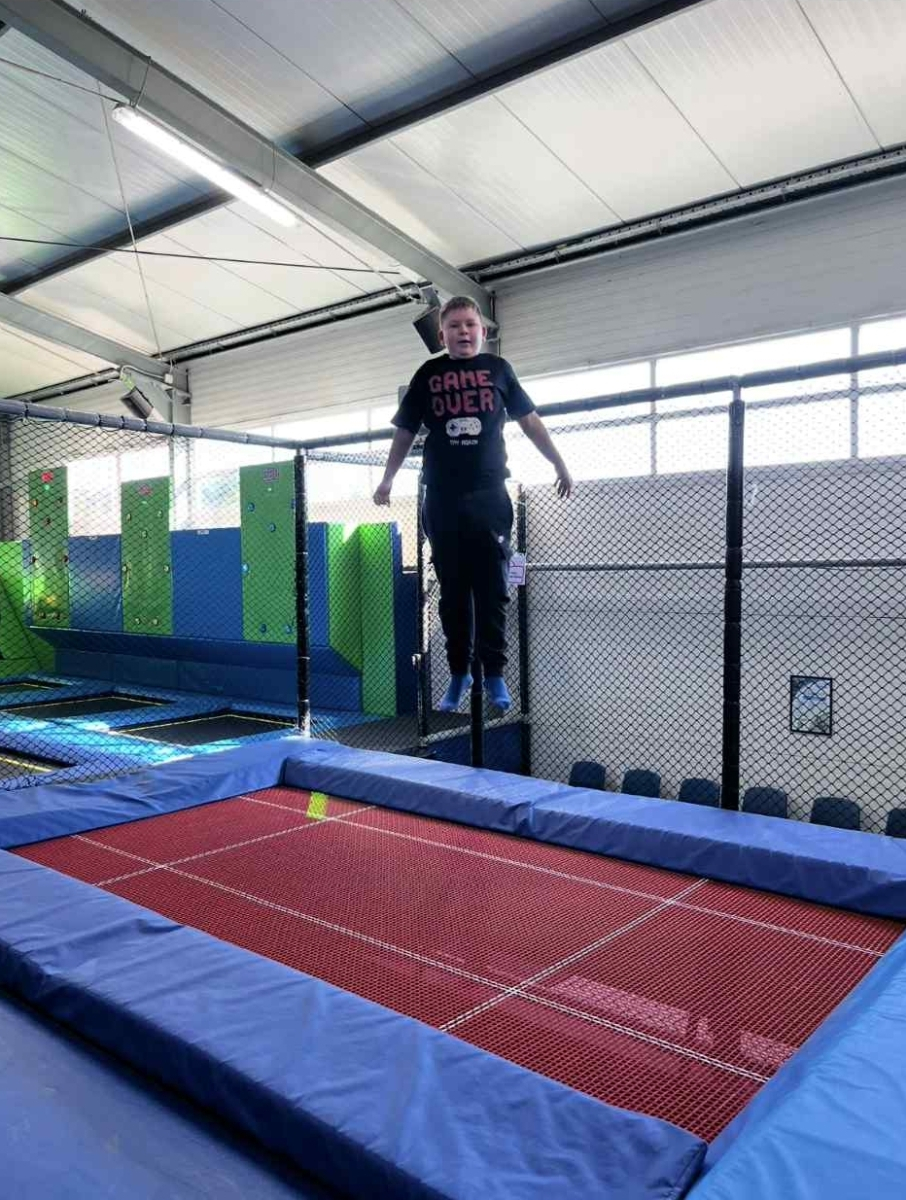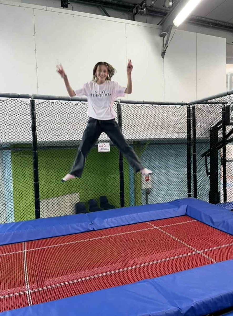 Po spektaklu pojechaliśmy do parku trampolin, gdzie mieliśmy czas na zabawę i ruch. Skakanie na trampolinach sprawiło uczniom wiele radości, a niektórzy spróbowali nawet swoich sił w prostych akrobacjach oraz na ściance wspinaczkowej.