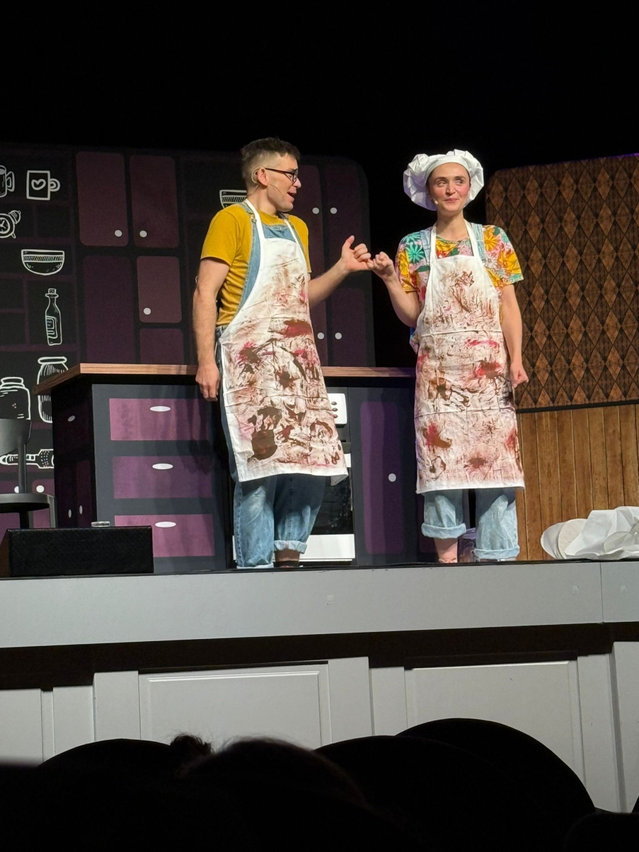 Nasze 5- i 6-latki z okazji Dnia Przedszkolaka wybrały się do teatru na spektakl „Palce lizać, czyli Wielki Wybuch”. Było mnóstwo śmiechu i dobrej zabawy – dzieci z zapartym tchem śledziły przygody bliźniaków, którzy próbowali upiec tort w dziadkowej cukierni.