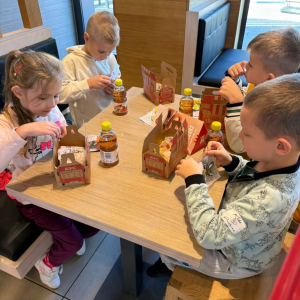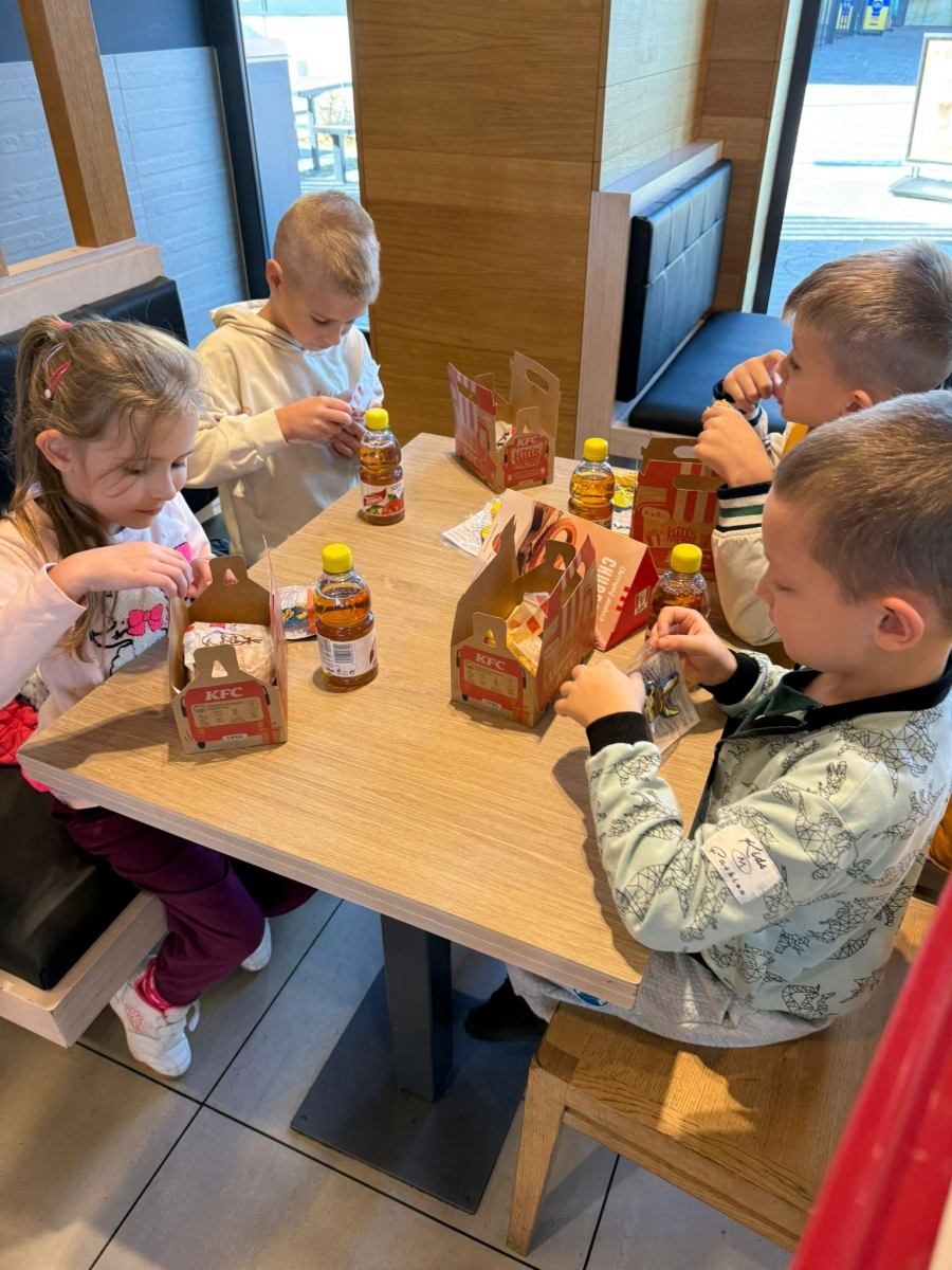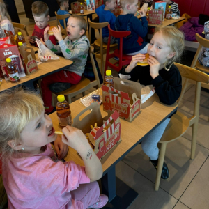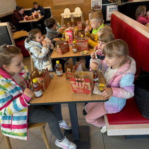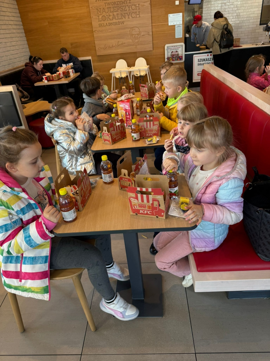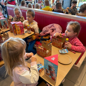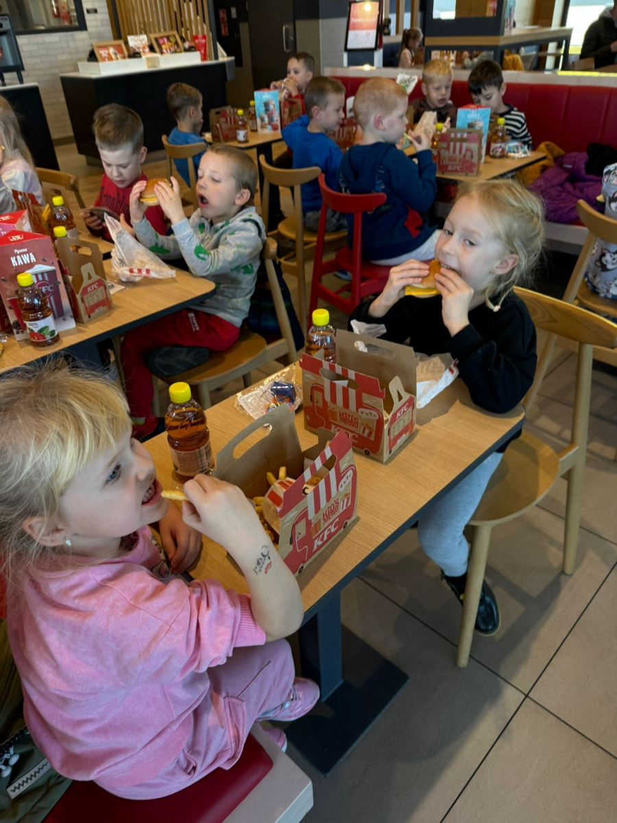 Po przedstawieniu przedszkolaki zjadły pyszny obiad w KFC, a na koniec każdy otrzymał małą niespodziankę.