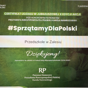Jak co roku tak również i w tym roku nasze przedszkole przystąpiło do akcji #SprzatamyDlaPolski. Sprzątamy dla Polski to ogólnopolska akcja, która ma na celu walkę z zanieczyszczeniami i promowanie dbałości o lokalne środowisko.